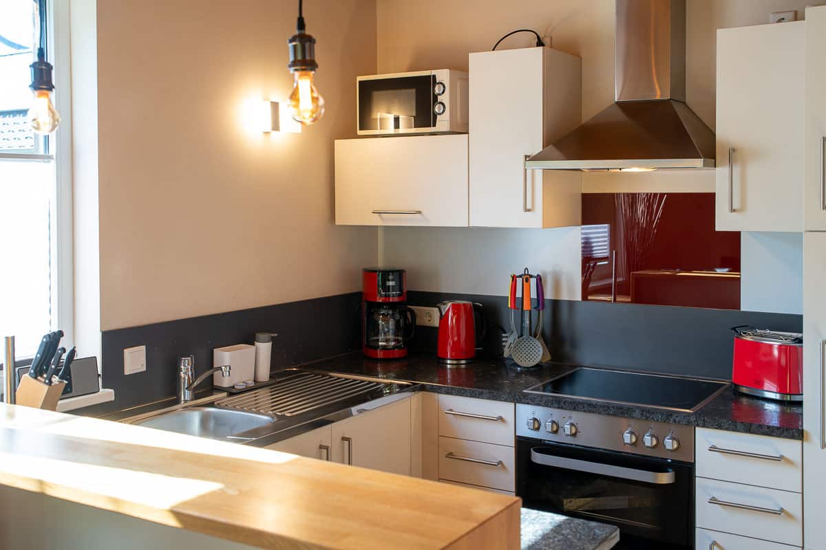 voll ausgestattete Küchen mit Herd/Backofen, Kühlschrank, Gefrierfach, Geschirrspüler, Mikrowelle, Filterkaffeemaschine & Senseo-Padmaschine
